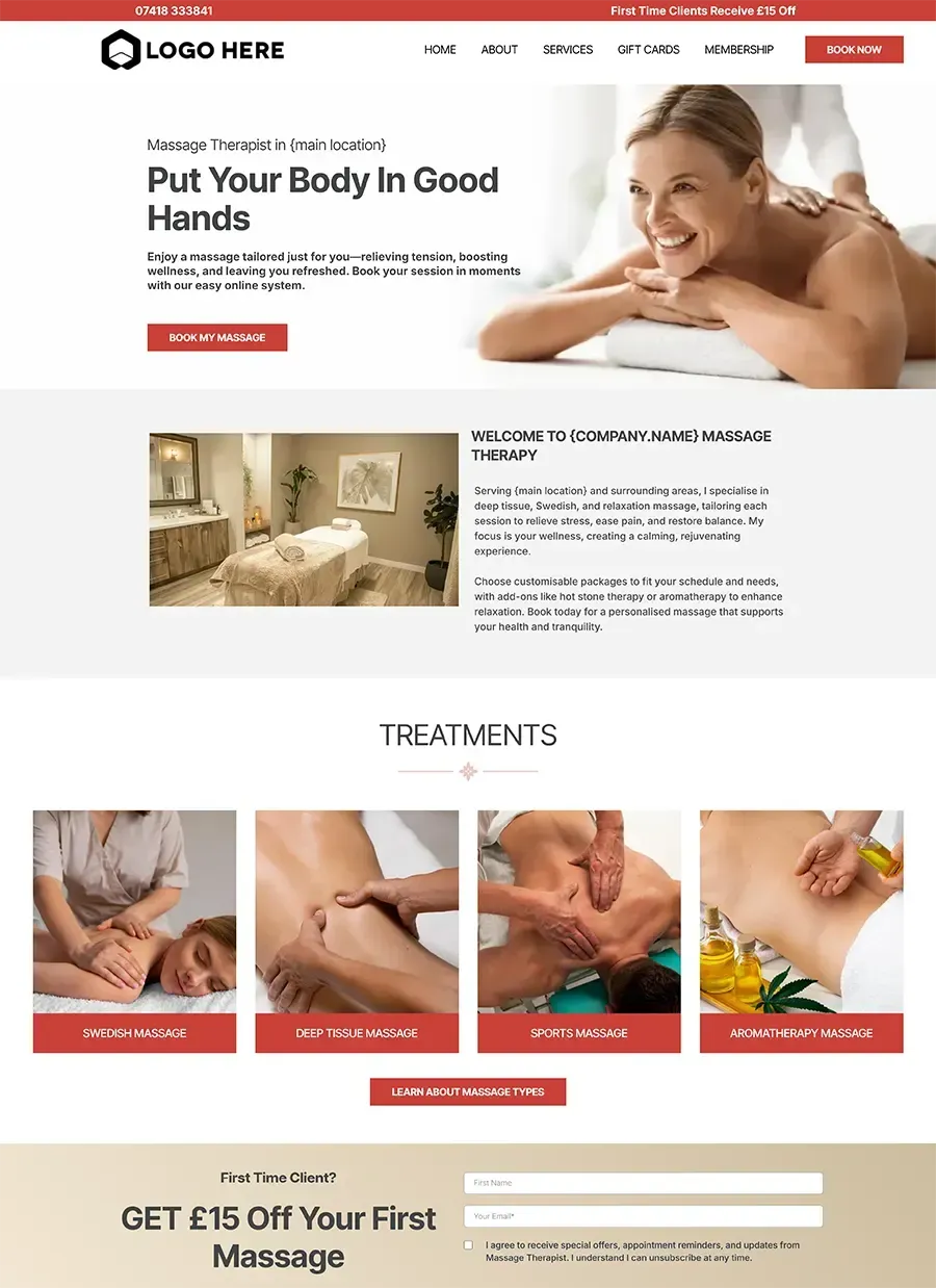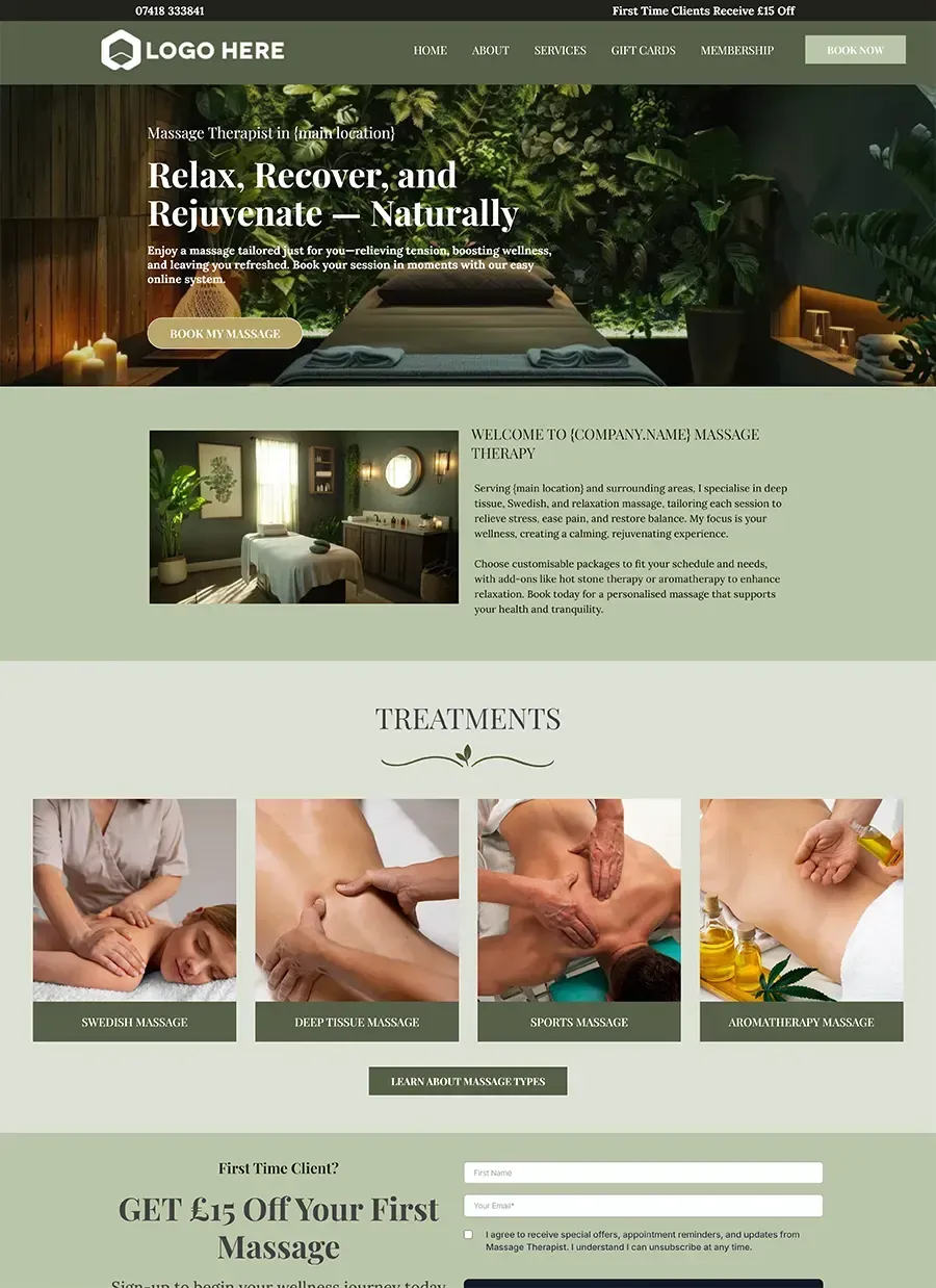 No matter which template you choose, your final website will be tailored to you and designed to help new clients feel confident booking with your practice.